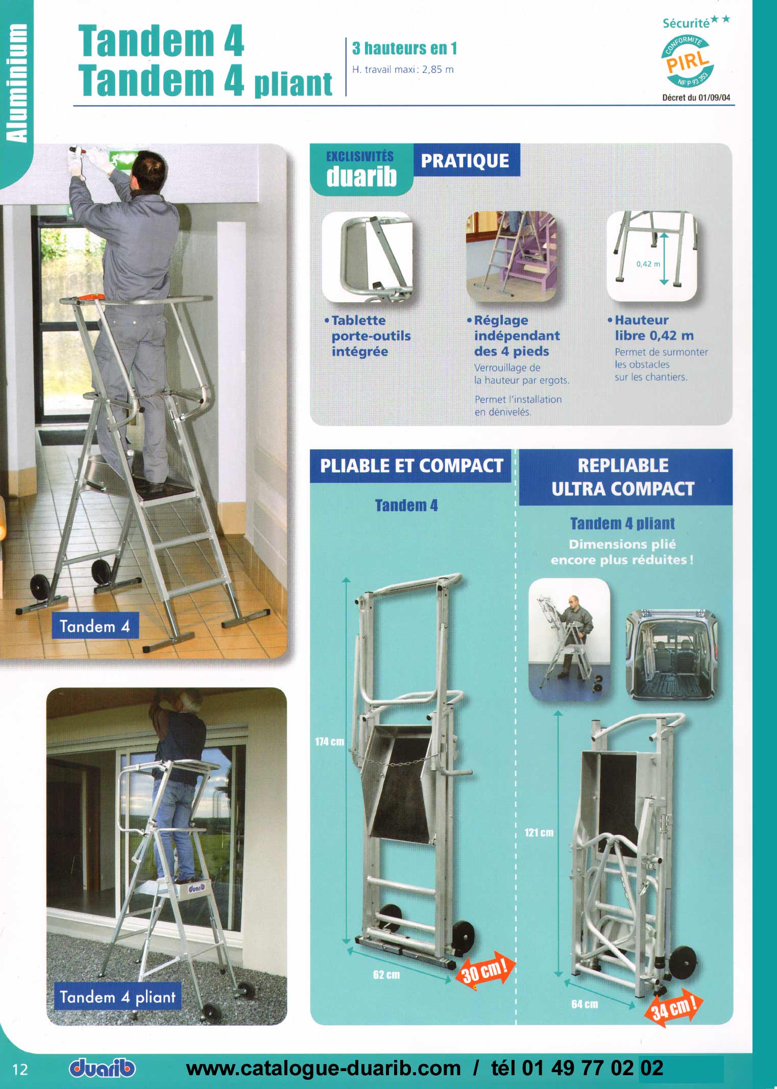 les échafaudages aluminium, échafaudage aluminium Comabi duarib , prix des échafaudages aluminium comabi duarib sont visibles dans le catalogue duarib ainsi que les prix des échafaudages aluminium mais aussi les prix des échafaudages acier pour façade donc pour façadier, pour peintre, pour maçon, pour couvreur, dans toutes les hauteurs. Les échafaudages fixes R200 sont aux nouvelles normes européennes EN12810 et 12811 conforme au décrêt 01/09/2004. Nous vous proposons des échafaudages aluminium starlium idéal pour un travail en façade ou sous plafond, les géréris en acier, hauteur plateau 6 mètre, -6 m, 7 mètres, 7 m, 8 m, 8 mètres, 9 m, 9 mètres, 10 m, 10 mètres, 11 m, 11 metres, 12 métres, 12 m, 13 m, 13 métres, 14 m, 14 mètres, 15 m, 15 mètres, 16 m, 16 mètres, 17 m, 17 mètres, 18 m, 18 mètres. Vous trouverez également des gazelles ou tétris, socles à vis articulé pour départ d'échafaudage, filets de protection, des colliers orientables, amarrges chevilles, amarrage vérins, plancher alu, plancher alu-bois, placher acier. La tour escalier 3 m x 1.50 mètres de large de type solidium, des monte-matérieux pour couvreur, plaquiste, pour maçon à des prix très intéressants.