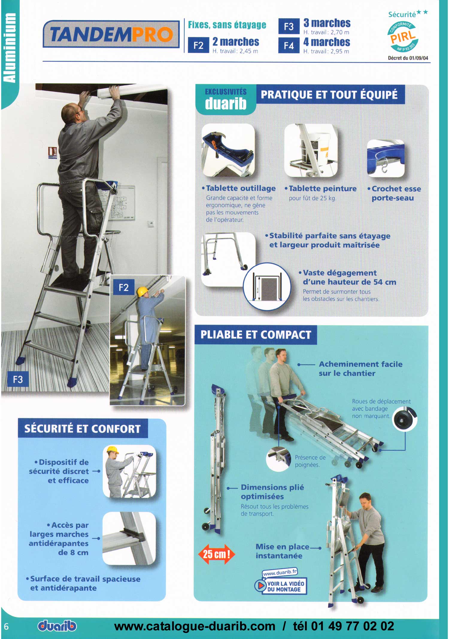 echafaudage fixe, échafaudage sur facade, echafaudage pour macon, echafaudage pour maçons, duarib vous propose des promotions valables jusqu'au 12/09/2008 Des prix, encore des prix pour des lots d' échafaudages de façade R200, des lots d'échafaudages de constructions M49, de couvreur, des lots de planchers aluminium, acier, des lots de filets, d'amarrages chevilles ou vérins.Sans oublier, les échafaudages roulants en aluminium hauteur plateau 6 / travail 8 m, pour le 180, 280, 400, 600, avec escaliers intérieurs. L' échafaudage roulant anodisé, à ne pas rater pour travailler sans avoir les mains sales. Les plates-formes de sécurité sont aussi en promotion, le tétris, le minix, l' hélis, le marchepieds sécurisé aluminium skippy 3 ou 4 marches